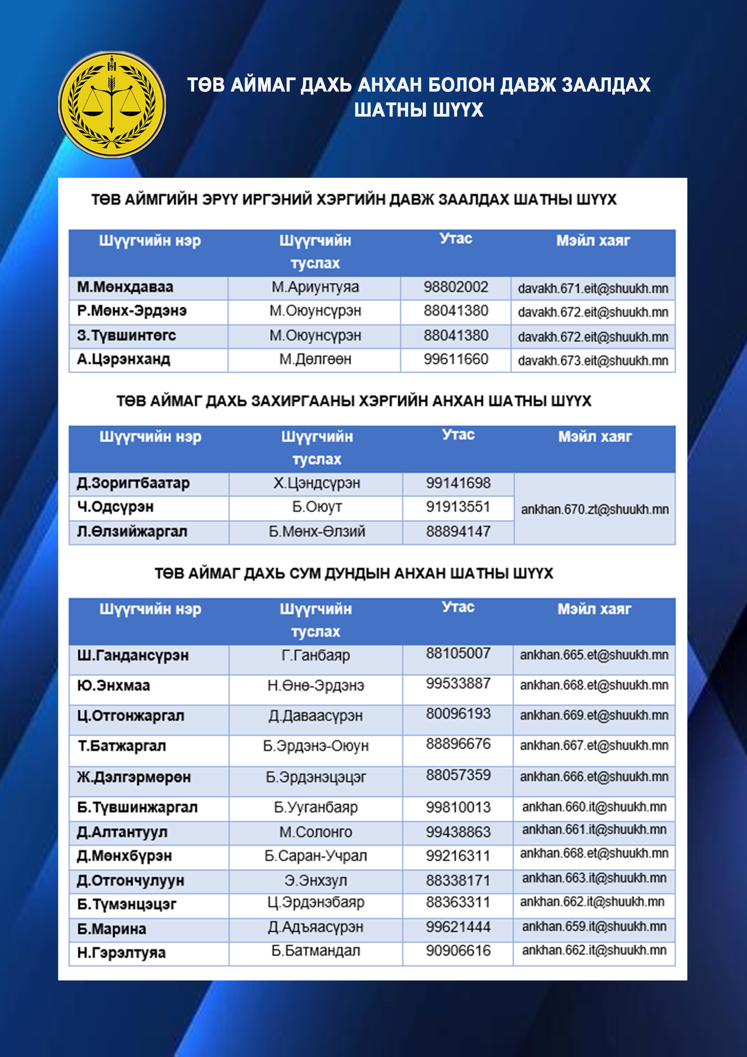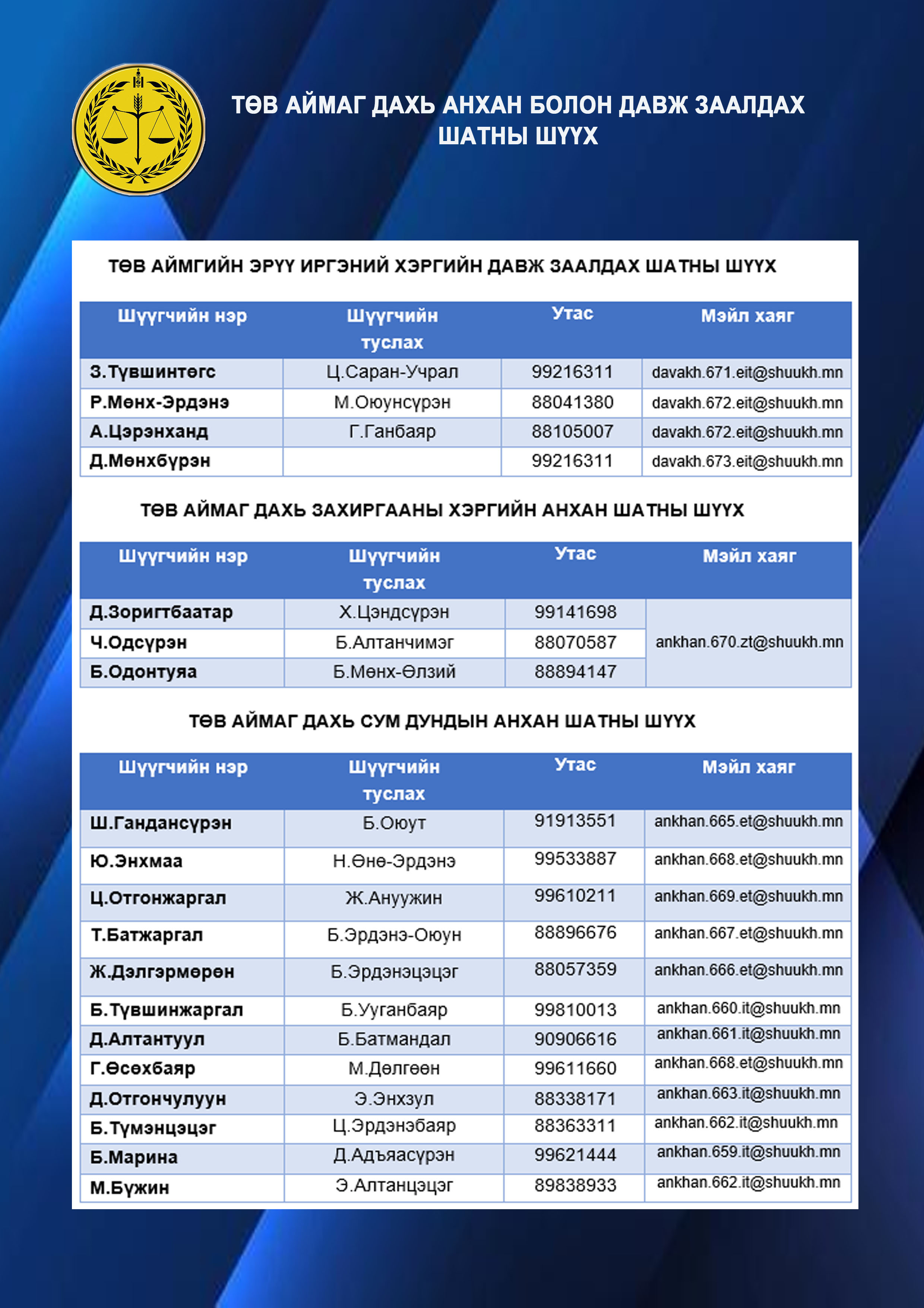 ТӨВ АЙМАГ ДАХЬ СУМ ДУНДЫН АНХАН ШАТНЫ ШҮҮХЭД ХАНДАЖ ГАРГАЖ БАЙГАА ГОМДОЛ, ХҮСЭЛТЭЭ МЭДЭЭЛЭЛ ЛАВЛАГААНЫ МЭРГЭЖИЛТНИЙ