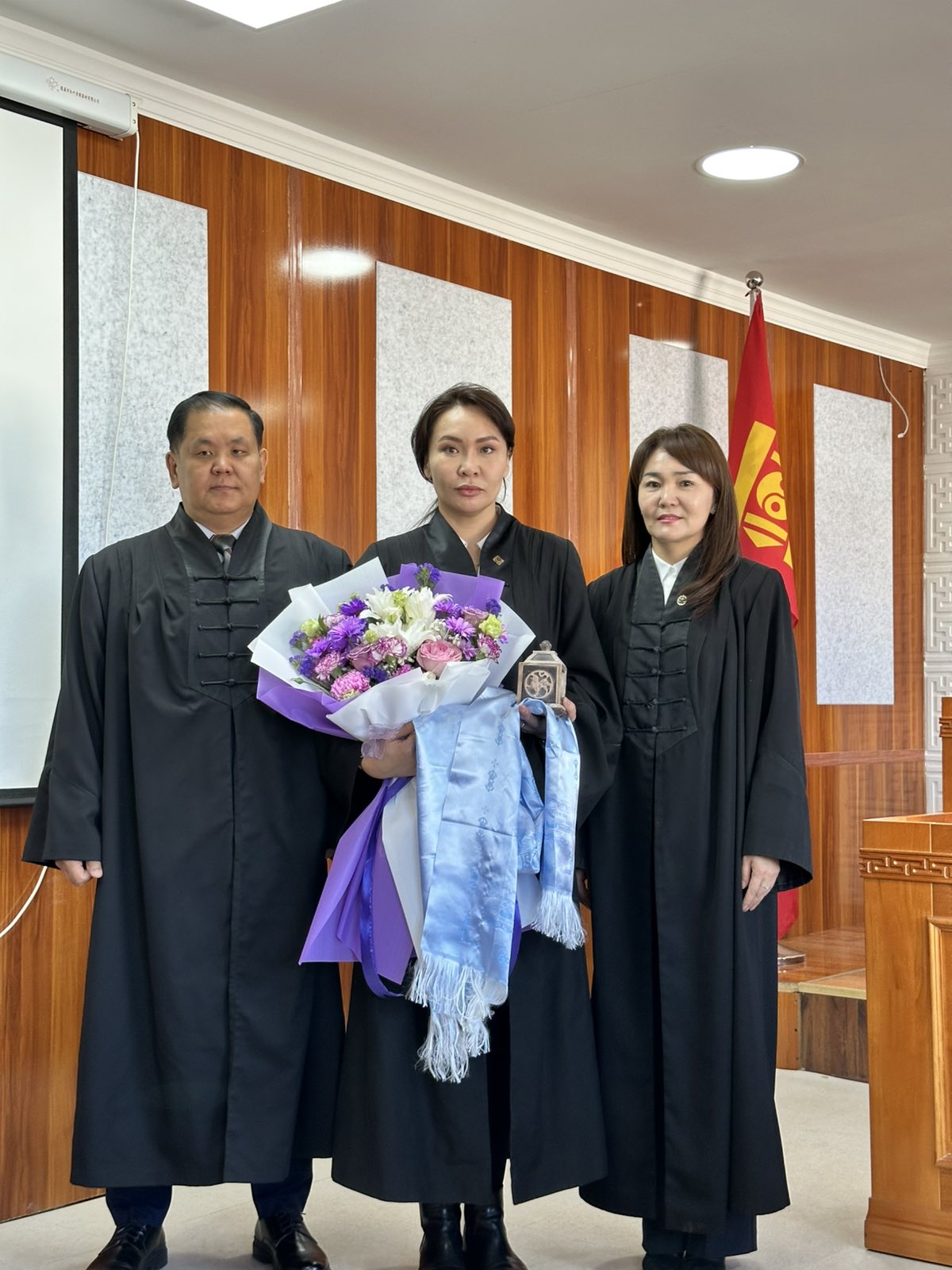 Төв аймгийн Эрүү, Иргэний хэргийн давж заалдах шатны шүүхийн 2025 оны 10 дугаар сарын 17-ны өдрийн 26 дугаар "Ерөнхий шүүгчийг сонгох тухай" шүүгчдийн зөвлөгөөнөөр Төв аймгийн Эрүү, Иргэний хэргийн давж заалдах шатны Ерөнхий шүүгчээр сонгогдсон З.Түвшинтөгсөд шүүхийн тамга тэмдгийг гардуулан өгч, баяр хүргэв.