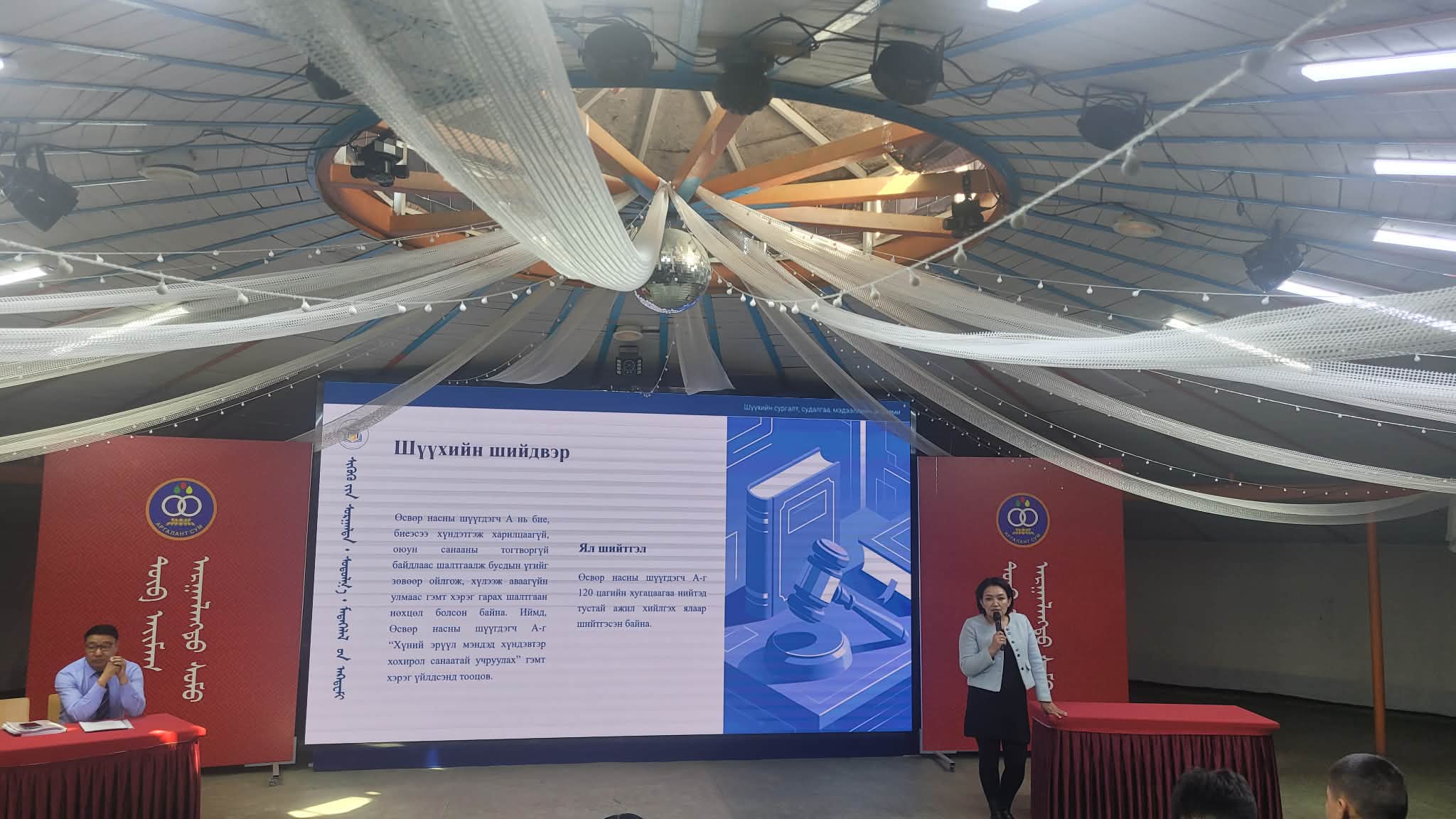 Төв аймгийн шүүхийн түүхт 100 жилийн ойг угтсан ажлын хүрээнд Төв аймгийн шүүх, Төв аймгийн Гэмт Хэргээс Урьдчилан Сэргийлэх зөвлөлтэй хамтран 27 суманд нүүдэллэн ажиллаж байна.